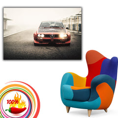 This retro car poster showcases the timeless beauty of the Alfa Romeo Alfetta 2000GT. Perfect for car lovers, it enhances your home decor with classic automotive art.