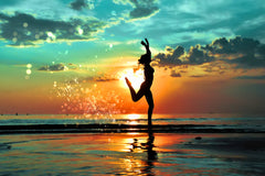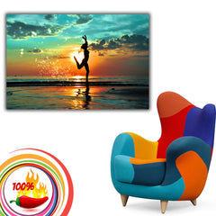 Beach Sea Sunset Girl Poster