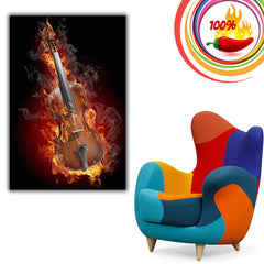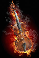 Flaming Violin Rock Music Poster