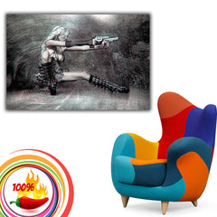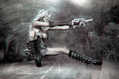 Hot Girl Blonde Gun Weapon Black and White Poster