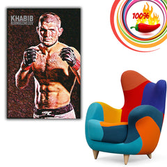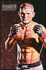 This poster showcases a powerful image of Khabib Nurmagomedov. Great for sports enthusiasts, it adds a motivating touch to any room. Display this striking piece of wall art to honor one of MMA's greatest champions.