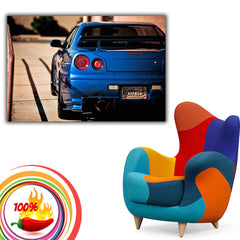 Nissan GTR R34 Blue Car Sunset Poster