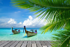Tropic Sea Boats Palm Poster