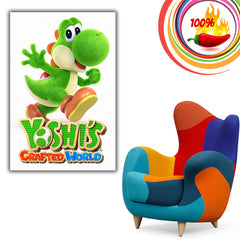 This poster presents a vibrant and cheerful design from Yoshi's Crafted World. Perfect for game room decor, it adds a fun and colorful touch to any space. Enhance your living area with this delightful piece of wall art that celebrates the joy of Yoshi's adventures.
