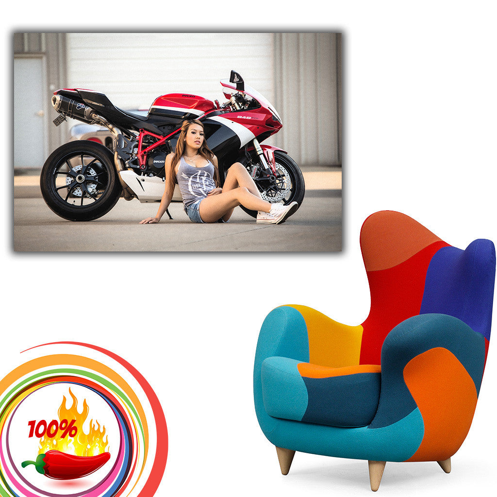 Cute Woman Girl Ducati 848 EVO Motorcycle Bike Motorbike Poster