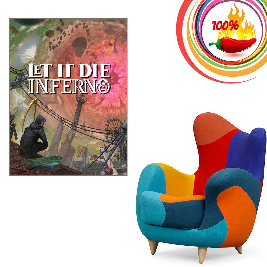 The Let It Die: Inferno poster brings intense, game inspired energy to any room, blending bold gaming aesthetics with modern wall art style. This art print works as striking home decor for bedrooms, gaming setups, or studio spaces, creating a dramatic focal point that reflects your passion for roguelite survival action.