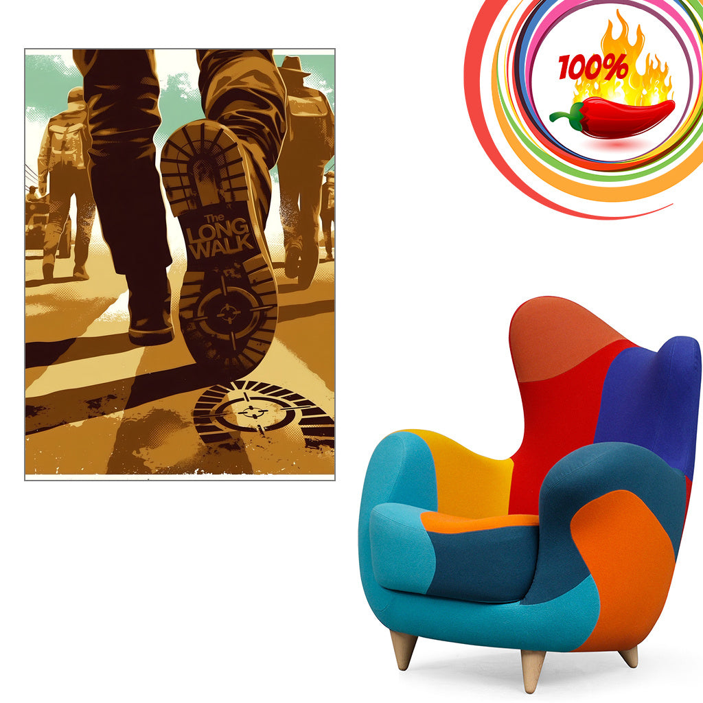 The subject depicted on this poster is deeply rooted in the gripping world of a dystopian alternate America. Here, a totalitarian regime orchestrates a chilling annual event where 50 teenage boys are forced to participate in a life-or-death walking contest. The stakes are high: maintaining a minimum pace is crucial, as those who fail face dire consequences. The narrative explores themes of survival, endurance, and the human spirit, making it a compelling and thought-provoking piece that challenges viewers to confront a haunting reality.